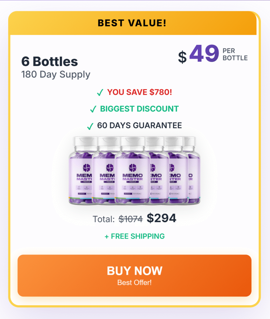 Right now, readers of this page have access to an exclusive discount of up to 73% OFF on the 6-bottle package, plus the company’s ironclad 60-day money-back guarantee. This means you can try MemoMaster completely risk-free: if for any reason you’re not satisfied, you get every penny back — no questions asked.